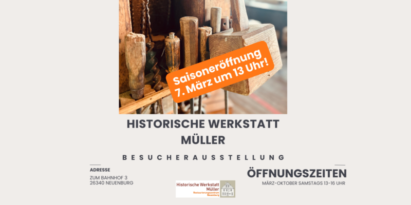 Die Historische Werkstatt Müller startet am 7. März in die Saison! Ab dem 7. März ist die Historische Werkstatt Müller im Ortskern Neuenburgs wieder regelmäßig Samstags geöffnet! Heute ist die…