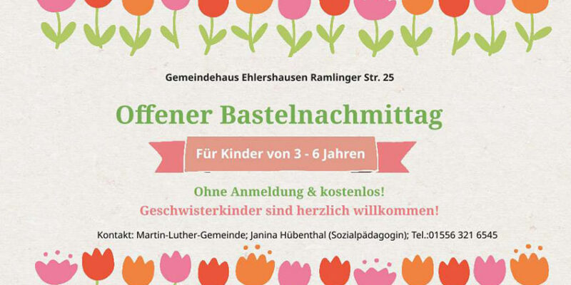Es erwarten Euch viele tolle Bastelaktionen rund um das Thema Ostern. Falls ihr keine Lust auf Osterbasteleien habt, könnt ihr Euch an unserer freien Bastelstation austoben und Eurer Kreativität freien…