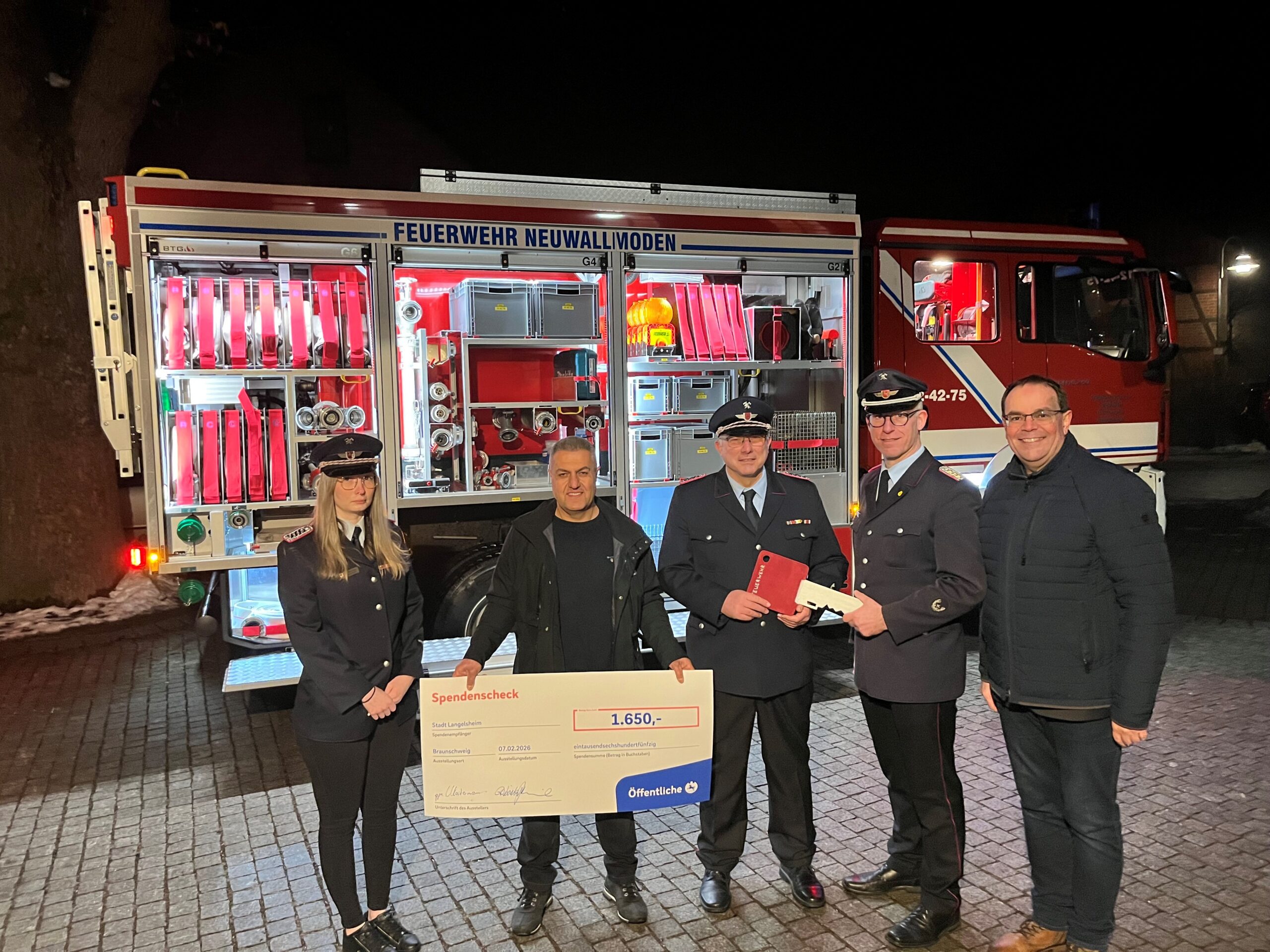 Am vergangenen Samstag erfolgte dann die Fahrzeugübergabe bei der Ortsfeuerwehr Neuwallmoden. Das Mittlere Löschfahrzeug (MLF) hat rund 350.000 Euro gekostet. Ortsbrandmeister Ralf Köppelmann, stellvertretende Ortsbrandmeisterin Katharina Pieper und Stadtbrandmeister Matthias Brunke nahmen den symbolischen Schlüssel entgegen.