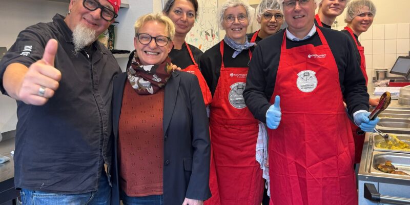 Und sogar Samtgemeindebürgermeister Matthias Hartlef war mit dabei – nicht nur als Zuschauer, sondern mittendrin: Er packte tatkräftig mit an und gab gemeinsam mit dem Küchenteam das frisch gekochte Essen aus.