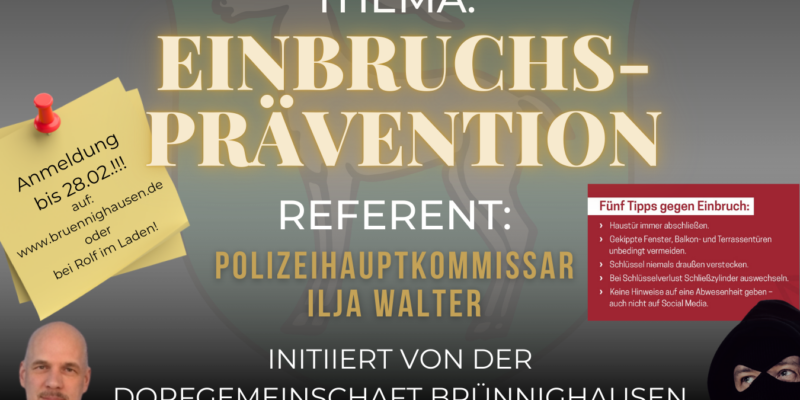 mehrfach wurde der Dorfgemeinschaftsverein darauf angesprochen, ob es nicht sinnvoll wäre, nach Einbrüchen in Brünnighausen im vergangenen Jahr, eine Infoveranstaltung zum Thema Einbruchsschutz durchzuführen.