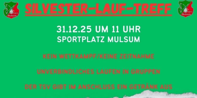 Das Jahr 2025 soll sportlich enden? Komme einfach am 31.12.25 um 11 Uhr auf den Mulsumer Sportplatz zum Silvester-Lauftreff. Ob du den Kilometer in 6 oder 4 Minuten läufst, mit…
