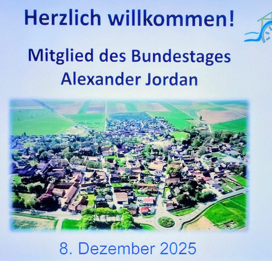 Alexander Jordan sagte Einladungen zu 2 größeren Veranstaltungen zunächst ab, verband dies jedoch mit dem konkreten Angebot eines späteren Besuchs. Sein Wahlkreisbüro nahm die Abstimmung auf, der Förderverein ebenso. Gemeinsam wurde ein Dezembertermin gefunden.