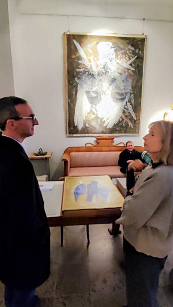 Stattdessen besuchte die Gruppe das Atelier und die Kunsträume von Prof. Klaus Stümpel. Dorothee Stümpel stellte das Werk ihres verstorbenen Mannes vor, darunter Natur- und Vogelmotive, die Werkreihe der „Menschlinge“ sowie eine Vorstudie des Türmers über dem Braunschweiger Wasserwerk.