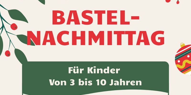Am 17. Dezember erwarten Euch im Gemeindehaus viele tolle weihnachtliche Bastelaktionen – diesmal für alle Kinder von 3-10.