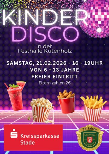 Kinder-Disco am 21. Februar in der Festhalle Kutenholz.