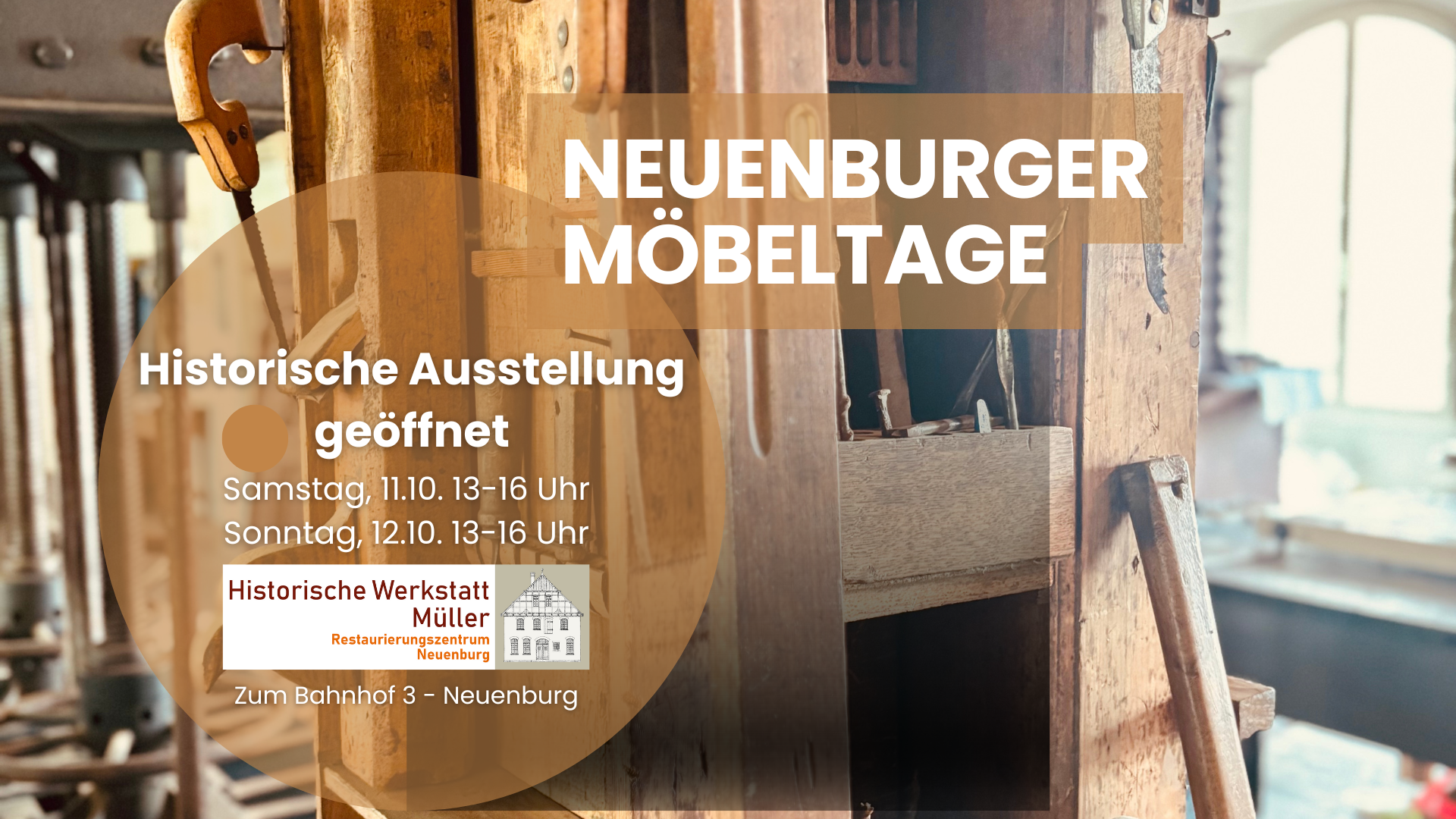 Ein Wochenende voller Inspiration, Trends und kulinarischer Genüsse erwartet Sie in Neuenburg während der Neuenburger Möbeltage. Und die Historische Werkstatt Müller öffnet ihre Tür! Wir laden Sie herzlich zum Besuch…