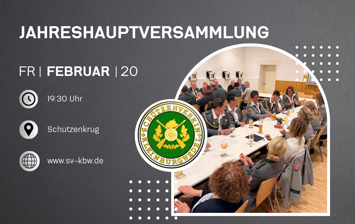 hiermit laden wir alle Mitglieder des Schützenverein Kleinburgwedel herzlich zur Jahreshauptversammlung ein. 📅 Freitag, 20.02.2026 🕢 Beginn: 19:30 Uhr 📍 Schützenkrug Im Anschluss gibt es wieder ein gemeinsames Essen. Für… |