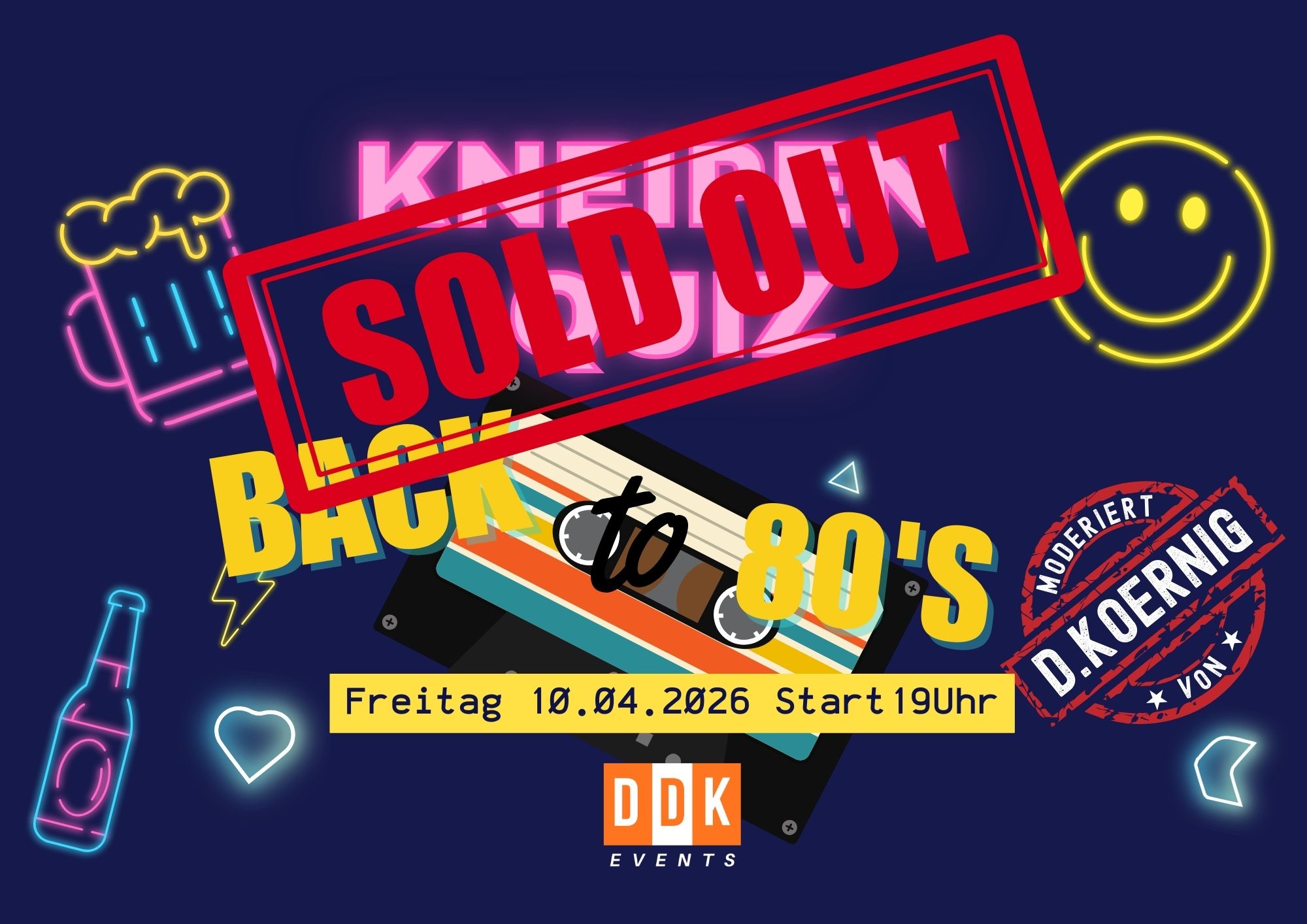 Ausverkauft!Das DDK-Team präsentiert bei uns im Schützenkrug das 3. KneipenQuiz – diesmal im 80er-Jahre-Style. Und kaum hatten die Jungs das Event angekündigt, waren auch schon alle Plätze vergeben. Alle, die…