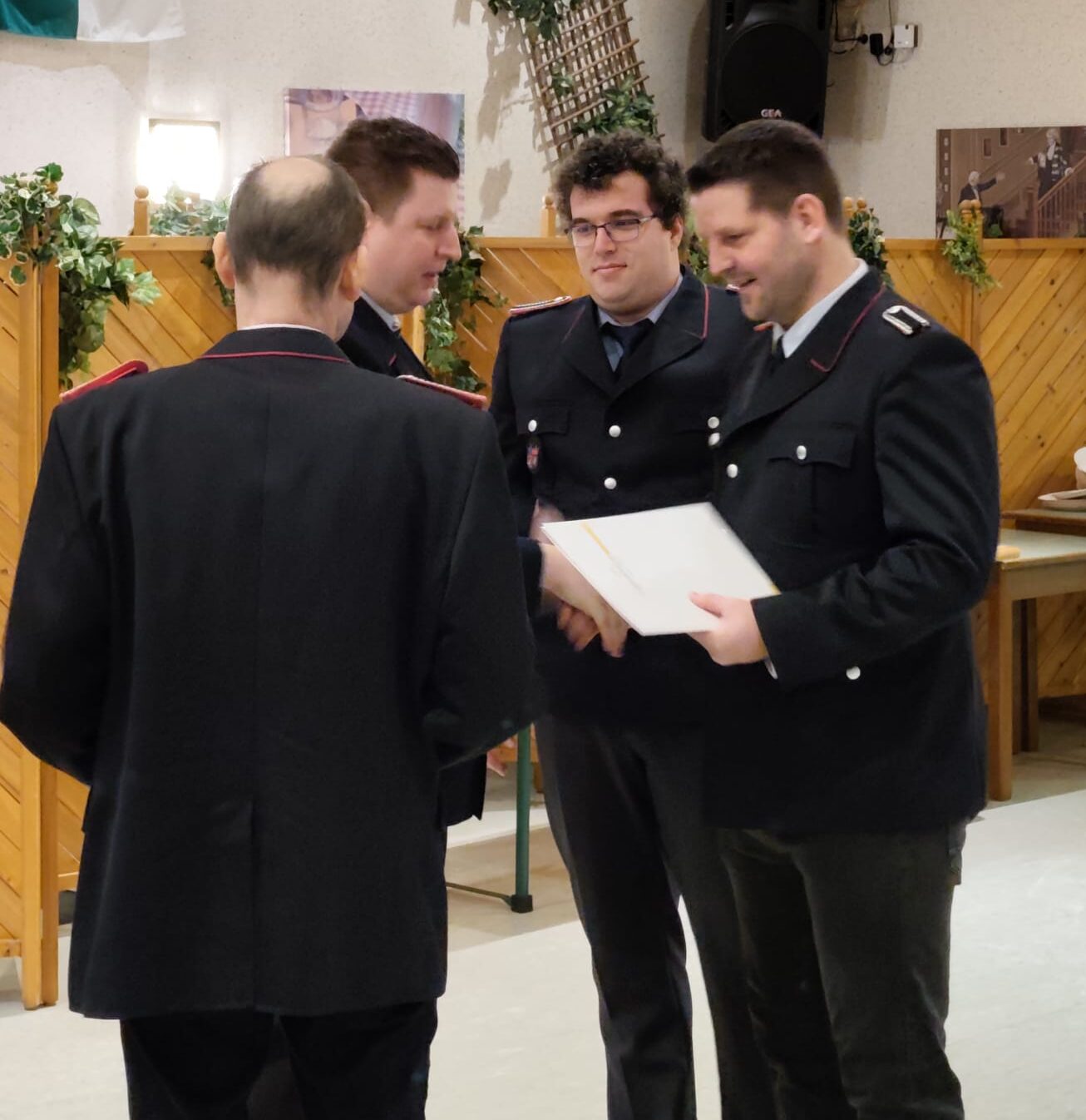 Felix Frost und Christian May wurden zum Oberfeuerwehrmann befördert sowie Colin Reineke und René Schnurbusch zum Hauptfeuerwehrmann.