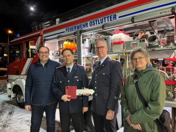 2026 startete für die Ortsfeuerwehr Ostlutter mit einem neuen Einsatzfahrzeug. Am 3. Januar übergaben Bürgermeister Ingo Henze und Ortsbürgermeisterin Karin Rösler-Brandt den symbolischen Fahrzeugschlüssel an Ortsbrandmeister Markus Latermann und Stadtbrandmeister Matthias Brunke. Das Tragkraftspritzenfahrzeug mit Wasser (TSF-W) hat rund 250.000 Euro gekostet.