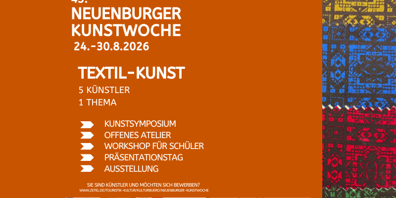 Die Neuenburger Kunstwoche jährt sich 2026 zum 43. Mal und soll in diesem Jahr die vielseitigen Einsatzmöglichkeiten von Textil und Tuch als künstlerisches Material und Thema in den Mittelpunkt stellen.