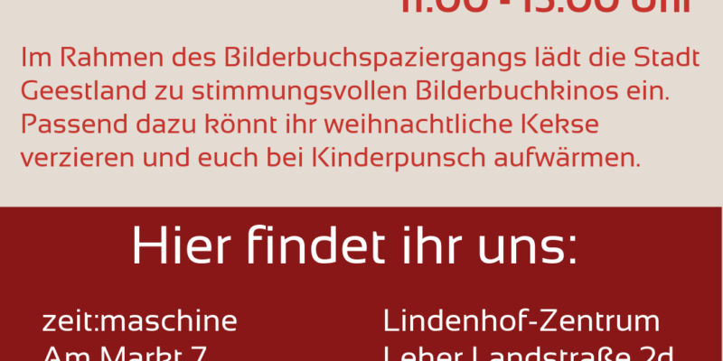 Mit der Familie durch die Ortsmitte schlendern und nebenbei bunte Bilderbuchseiten in den Schaufenstern bewundern: Das ist das Konzept hinter dem Bilderbuchspaziergang, den die Stadt Geestland in diesem Jahr wieder…
