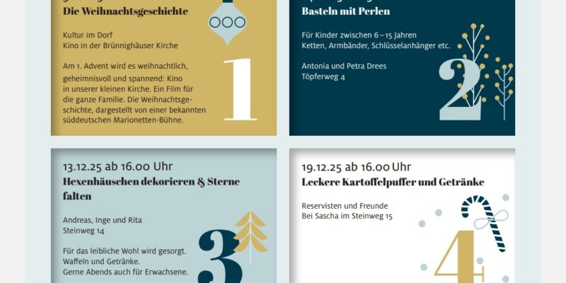 Fünf vorweihnachtliche Events sind dieses Jahr beim lebendigen Adventskalender in Brünnighausen zusammen gekommen. Jedes Einzelne ein Schmankerl für sich. Da haben sich die Brünnighäuser wieder was Tolles einfallen lassen. Die…