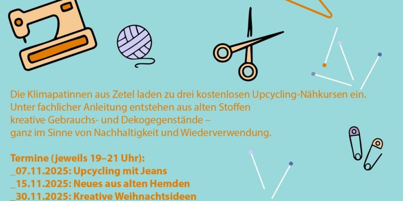 Unter dem Motto „Aus Alt mach Neu“ lädt die Klimapatin Aiske Schimmelpenning im November zu drei kostenlosen Upcycling-Nähkursen ins Mehrgenerationenhaus Zetel ein. Gemeinsam entstehen aus alten Stoffen und Textilien kreative…