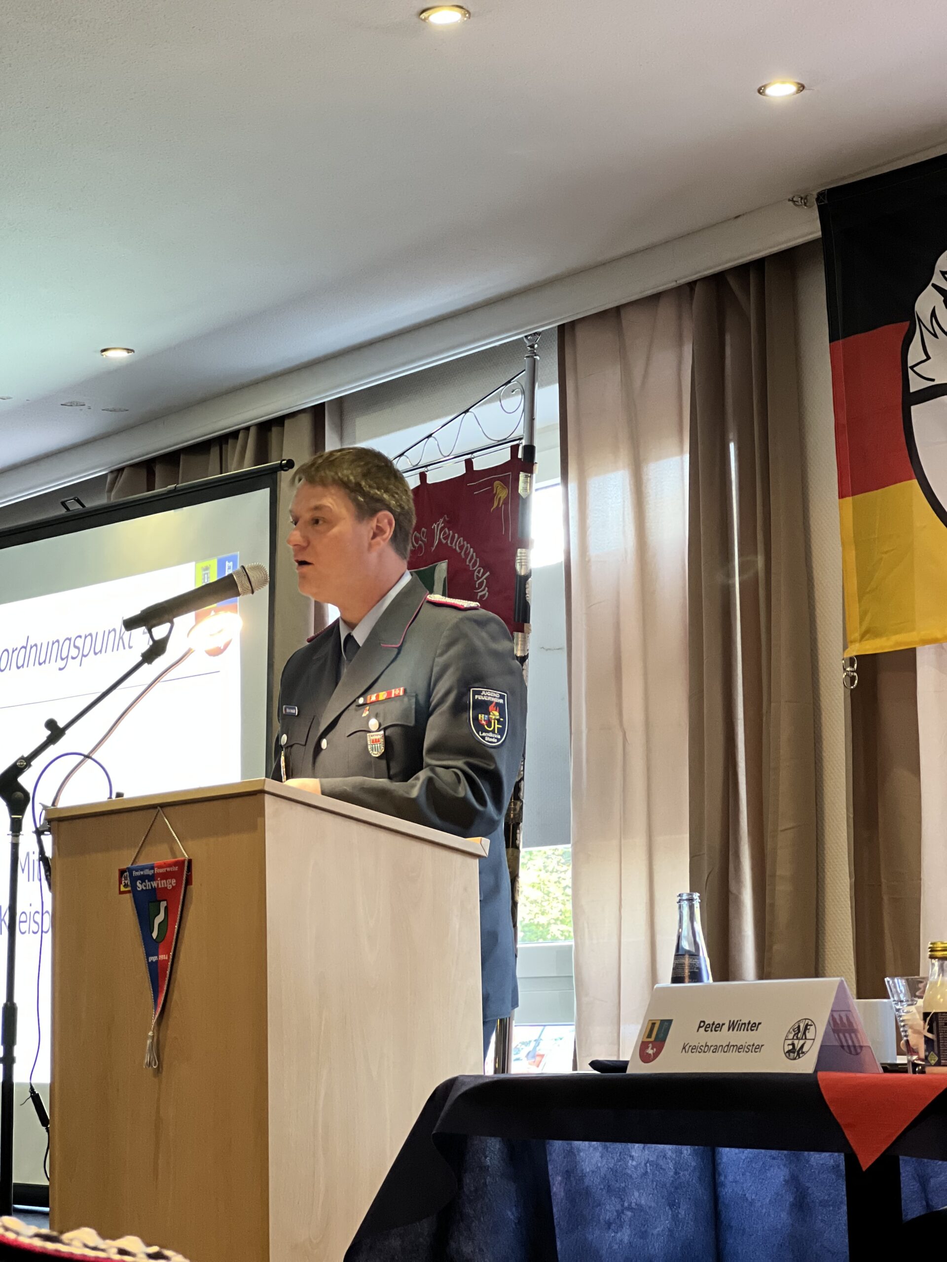 Kreisjugendfeuerwehrwart Björn Heibült am Rednerpult