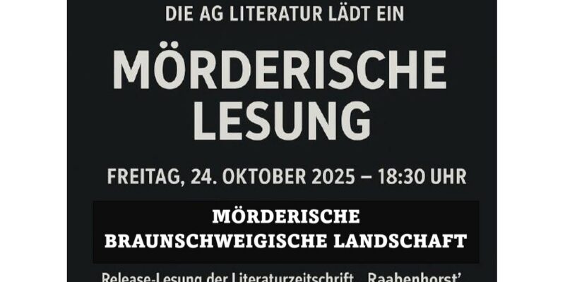 Die Publikation ist Kurzkrimis gewidmet, und so werden am Freitag, den 24. Oktober 2025, um 18.30 Uhr, acht Geschichten über Verbrechen in unserer Heimat von den Autorinnen und Autoren vorgestellt. Dazu gibt es Musik vom Duo Herwig, Norbert Mollenhauer und André Hirschmann. Es lesen Jennifer Albrecht (Salzgitter), Jürgen Osterloh (Braunschweig) Eva Ehmke (Wolfenbüttel), Martina Bethe-Hartwig und Helga Thiele-Messow (beide Braunschweig), Linda Entz und Stefan Miersch (beide Landkreis Helmstedt) sowie Herausgeber und Chefredakteur Lutz Tantow mit einer Kriminalgeschichte von Tilman Thiemig.
