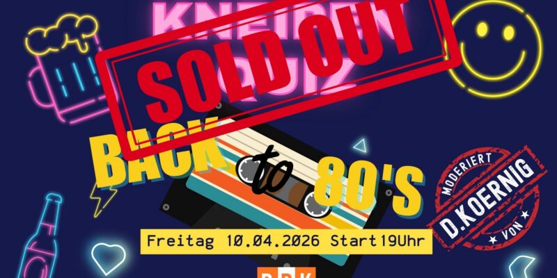 Ausverkauft!Das DDK-Team präsentiert bei uns im Schützenkrug das 3. KneipenQuiz – diesmal im 80er-Jahre-Style. Und kaum hatten die Jungs das Event angekündigt, waren auch schon alle Plätze vergeben. Alle, die…