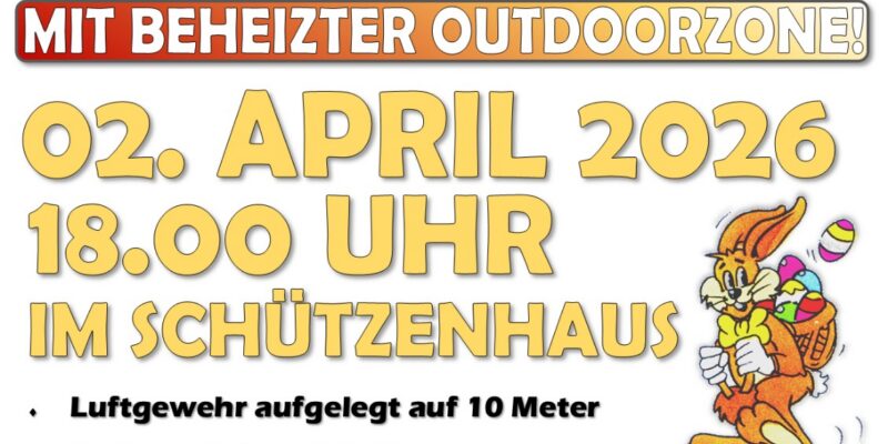 Am 02. April findet wieder das alljährliche Ostereierschießen statt. Merkt euch das Datum und kommt gern vorbei. Wir sind gespannt, wie viele Eier ihr mit nach Hause nehmen werdet.