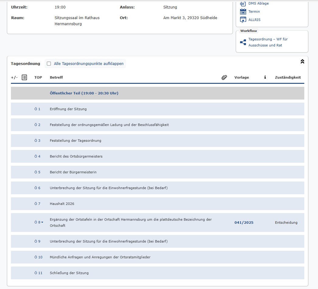 [Amtlicher Beitrag] Ortsratsitzung 30.10