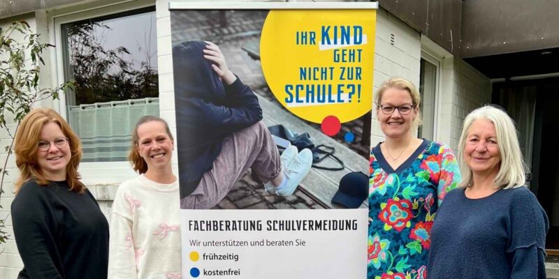 Beitragsbild: Das Team der Fachberatung Schulvermeidung mit Silvia Steffens (von rechts), Jarste Schmidt und Madlen Petsching unterstützt Familien und Schulen kostenfrei, zeitnah und vertraulich. Die Sozialpädagoginnen gehören zum Amt Jugend und Familie, ebenso wie Frauke Schulte (stellvertretende Amtsleitung).