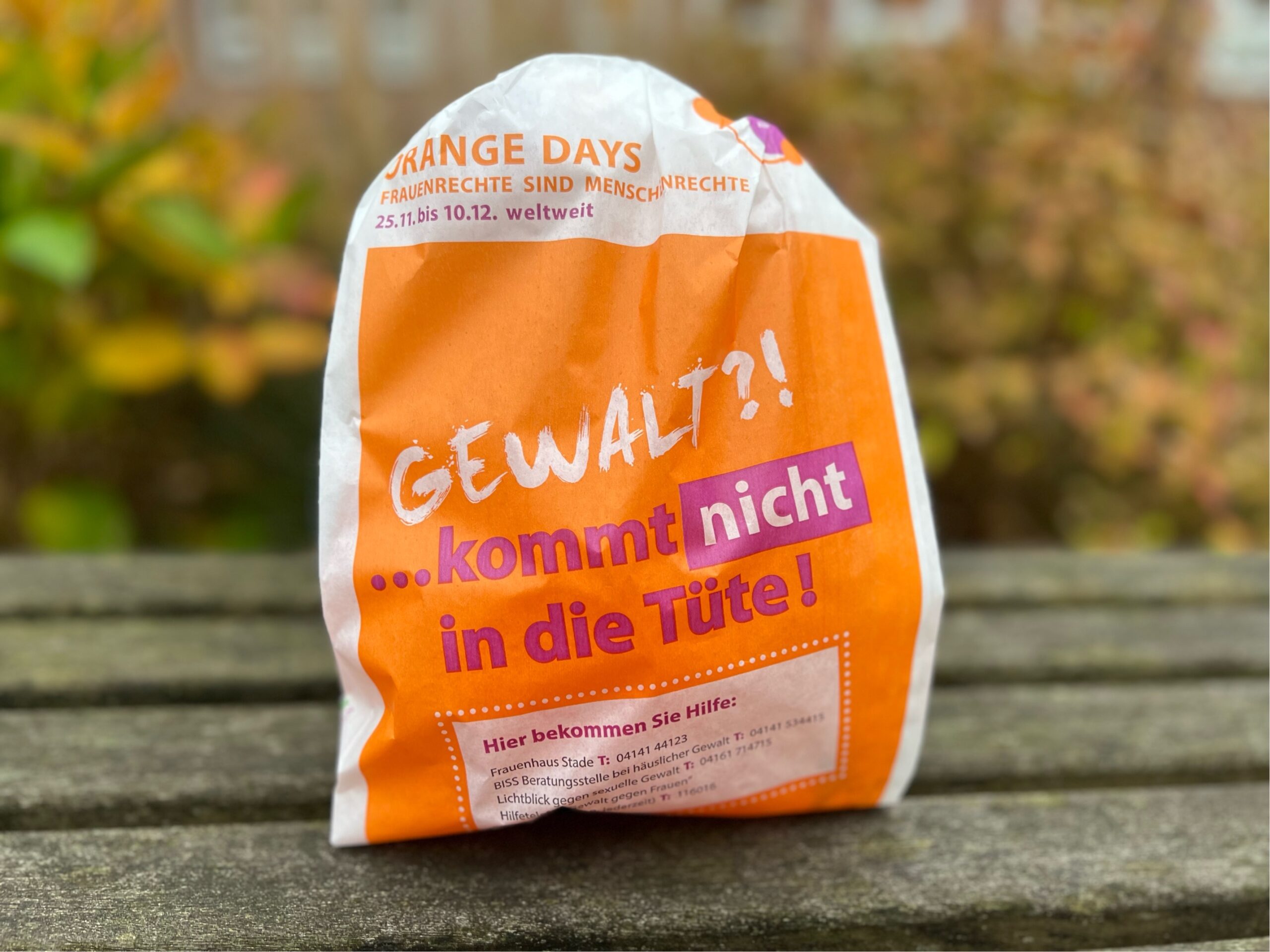 tuete_2_ 22. November 2024 2560 × 1920 Orange Days 100.000 Tüten werden in den nächsten Wochen in Bäckereien, Apotheken und Schulen sowie auf Wochenmärkten und von Vereinen verteilt. © Landkreis Stade