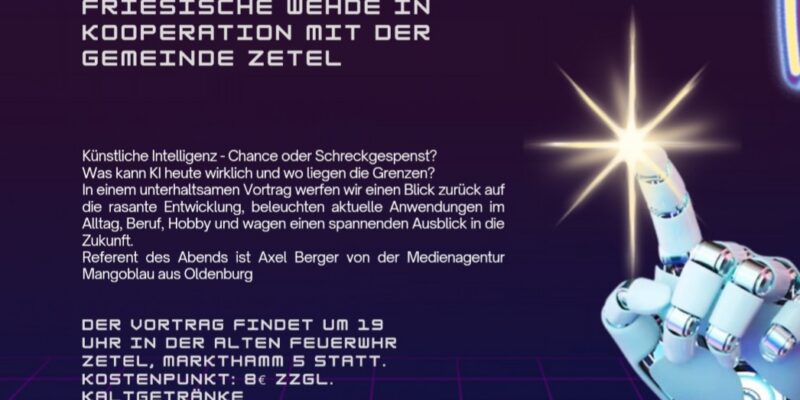 Am Dienstag, den 14.04.2026 findet in der Alten Feuerwehr Zetel, Markthamm 5, ein Vortrag über künstliche Intelligenz statt.