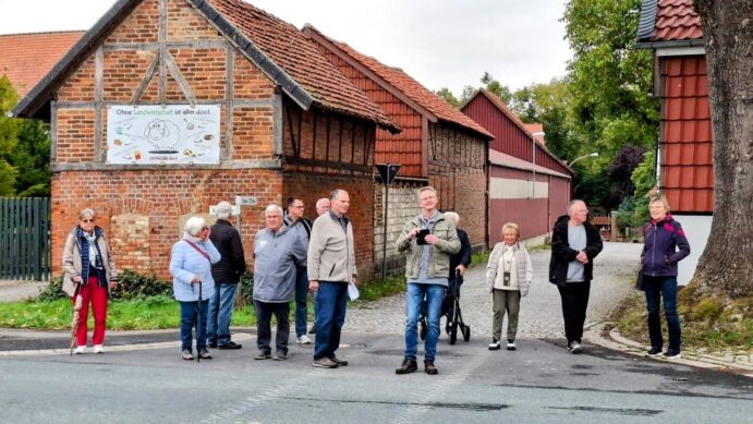 Nach der Begrüßung im Waagehäuschen eröffnete der neue Videoclip „Mühlendorf Räbke“ von Ansgar Rahmacher das Programm. Bei einem anschließenden Rundgang durch das Dorf informierte Christian Lubkowitz die Gäste über historische und aktuelle Besonderheiten, darunter die Hofanlage von Inge Buchholtz, den traditionsreichen Thieplatz sowie den Wassererlebnisplatz.